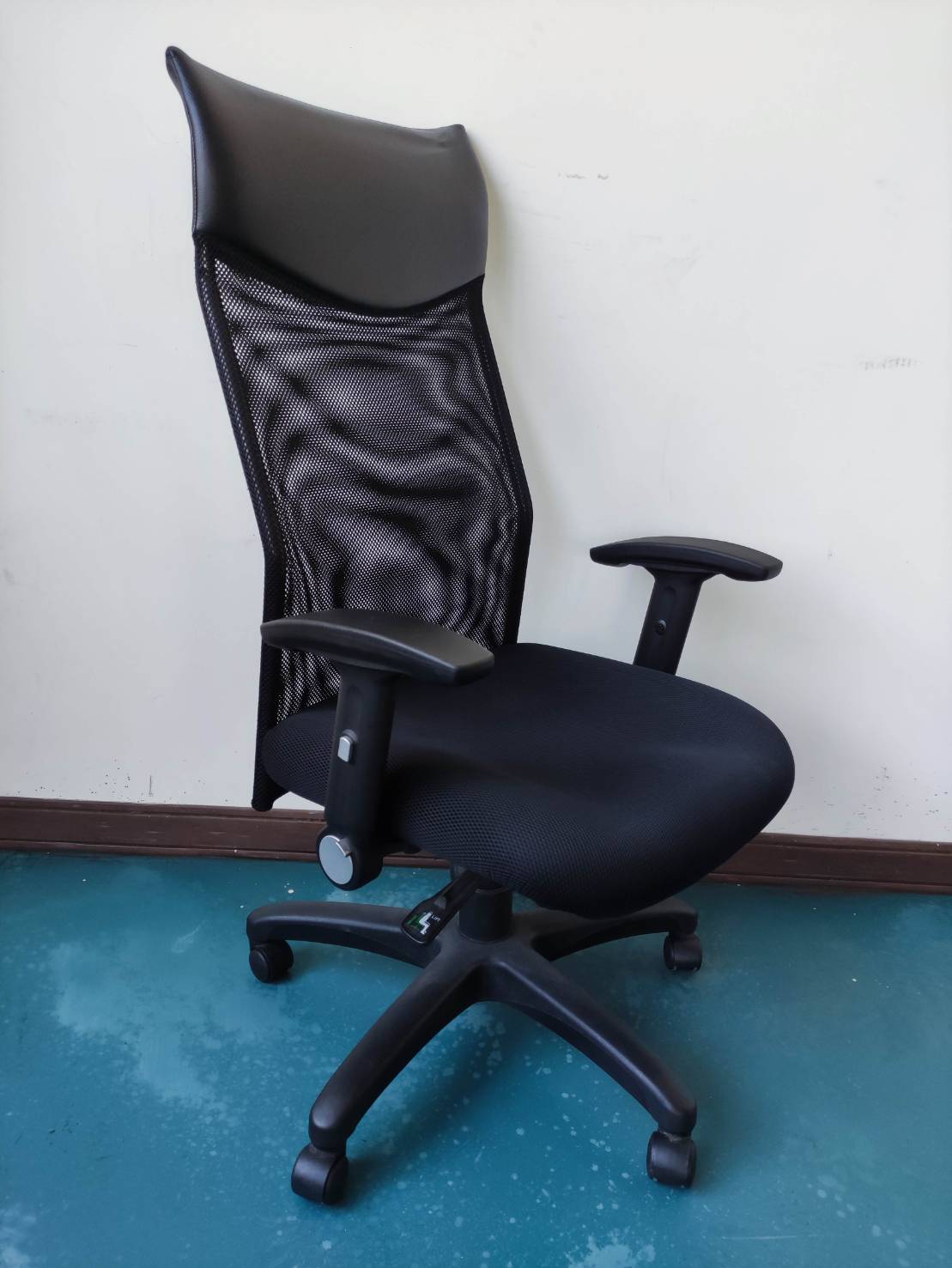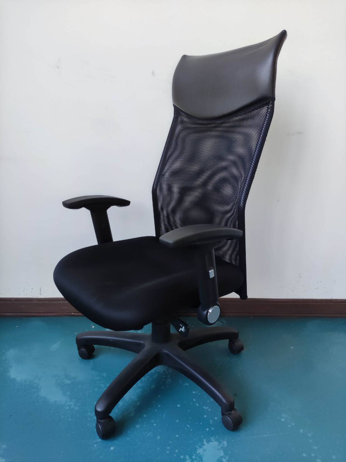 高背網椅,有扶手,扶手可後折,有後仰固定,氣壓伸降,坐墊厚實,可久坐,約有15張