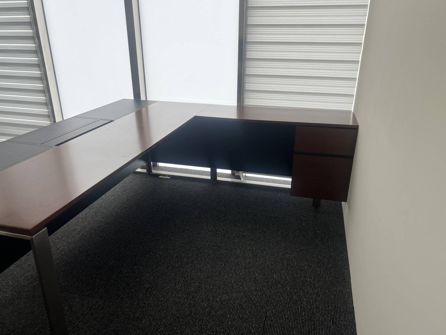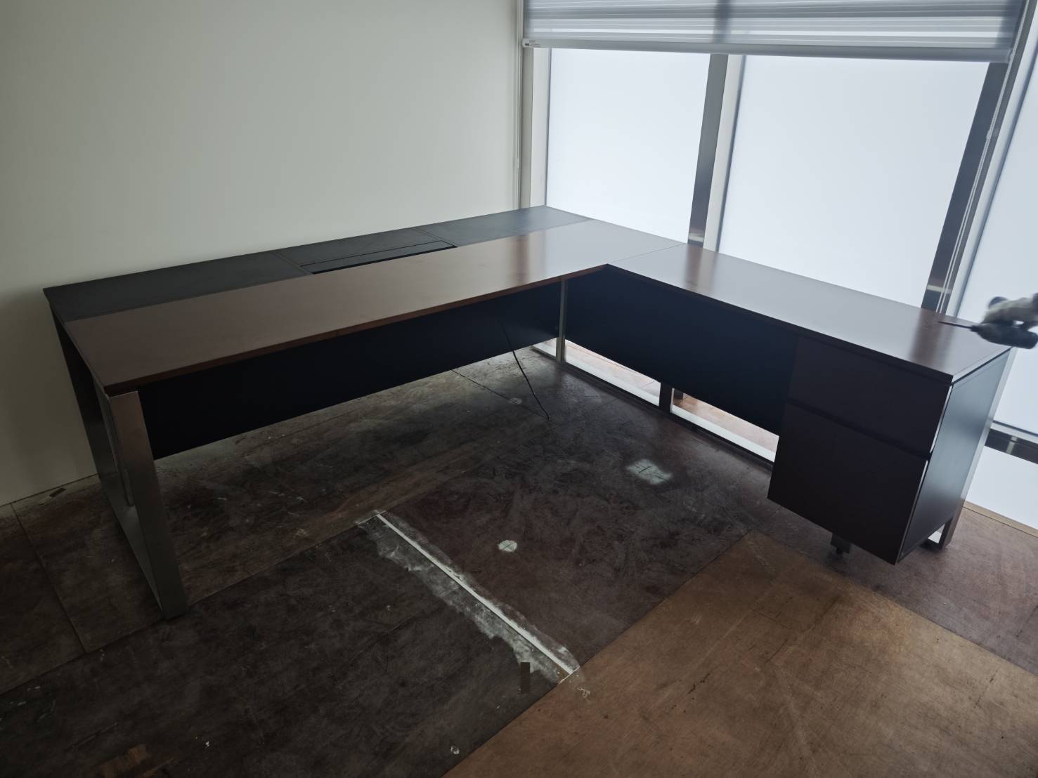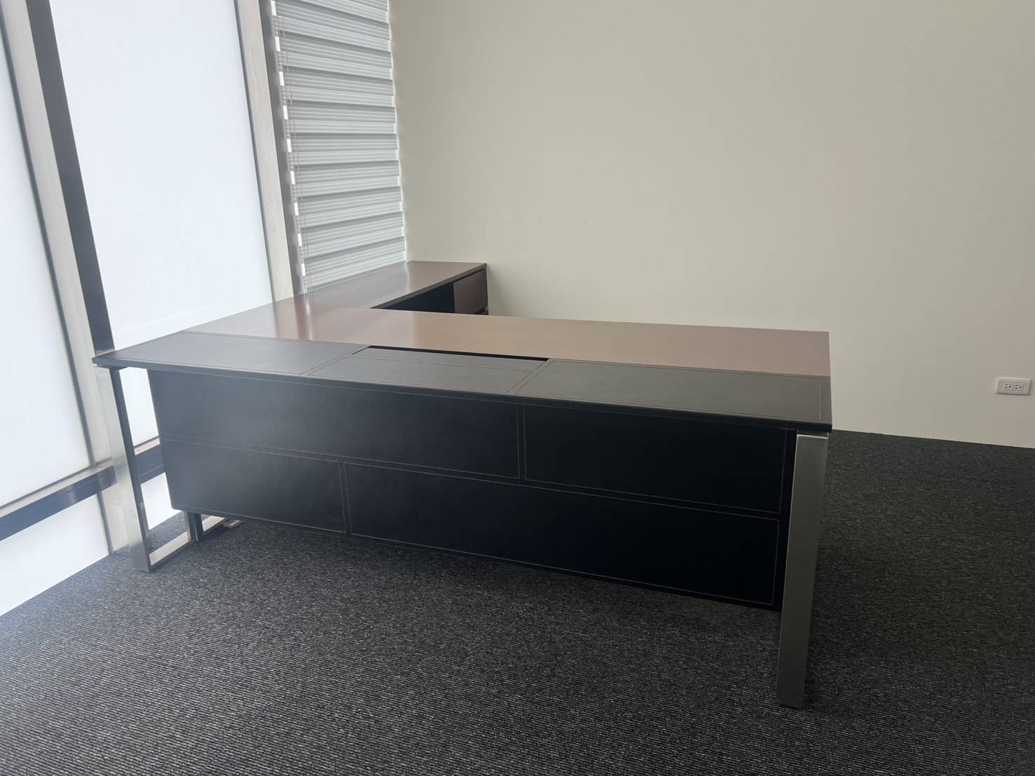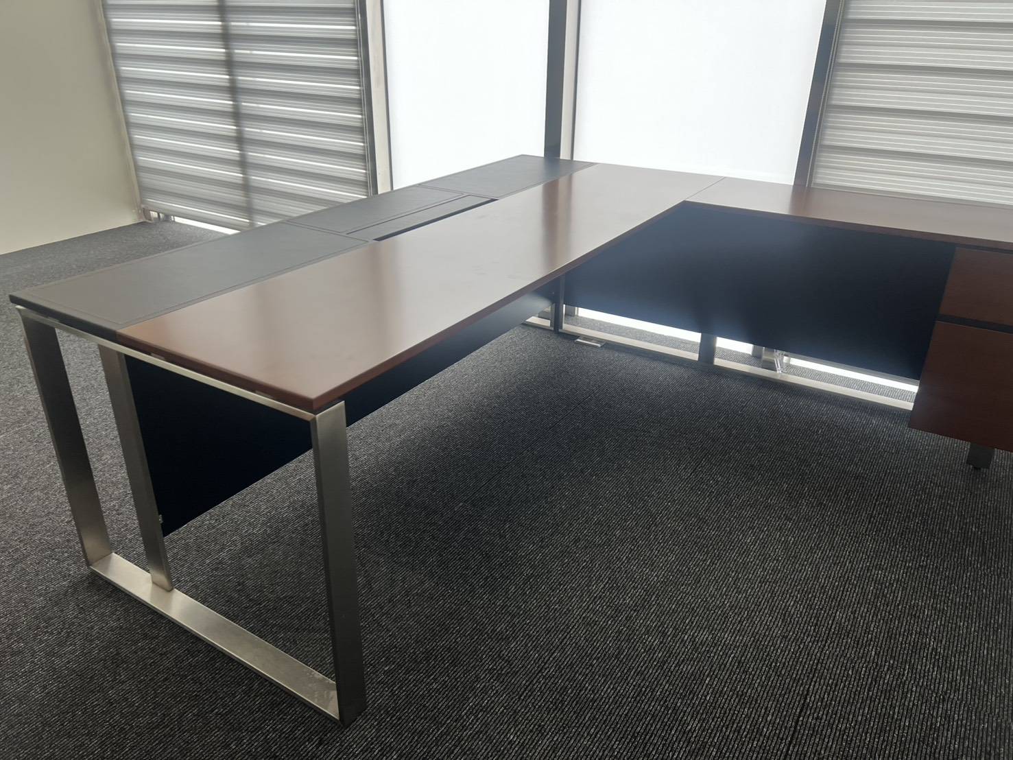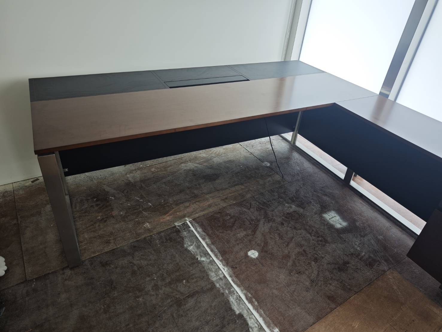 高級馬鞍皮面 ,白鐵腳,主管辨公桌,有出線盒,只能右側桌。只有一座