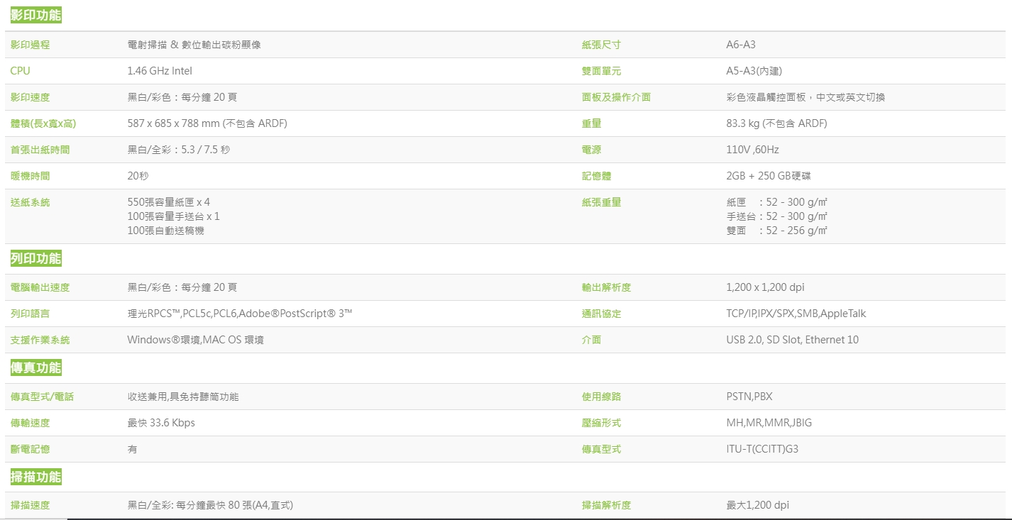 ARDF: 全彩 / 黑白最大 54張 /分鐘