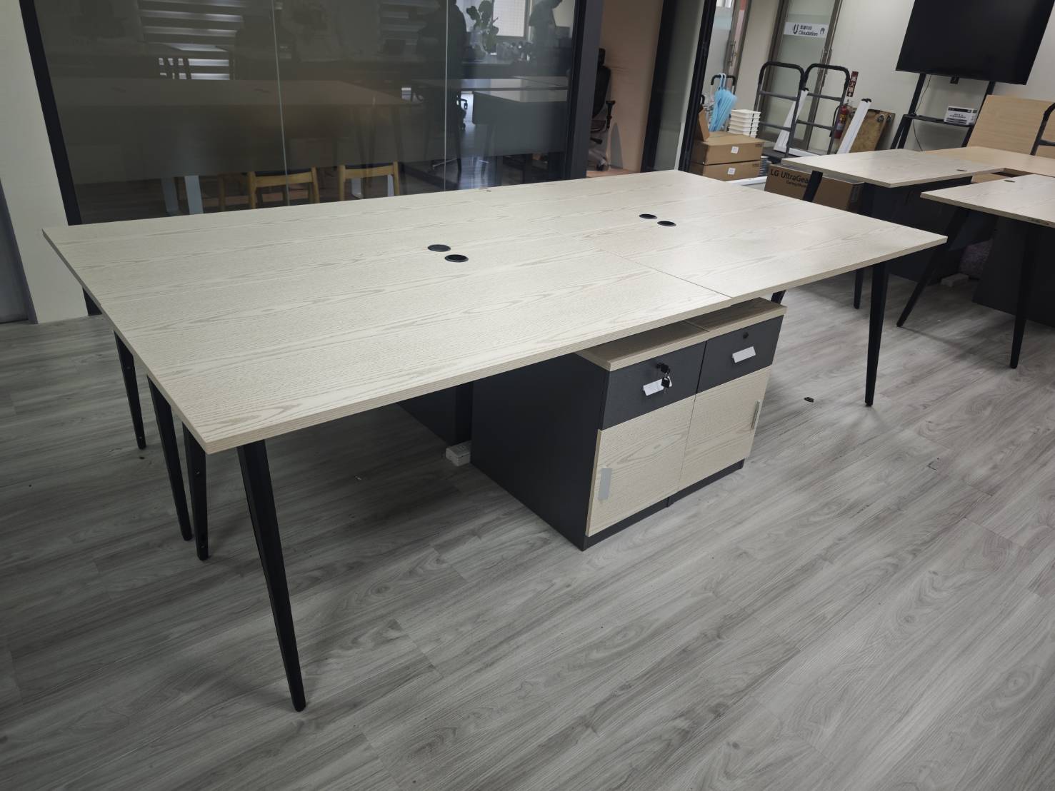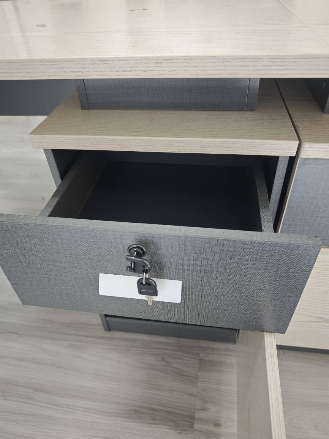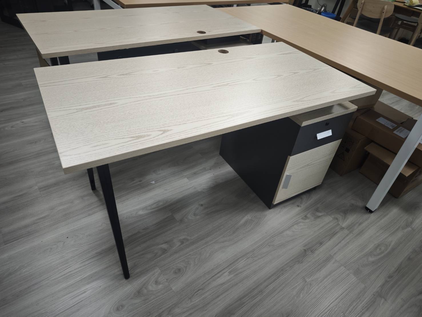 淺木紋 辨公桌含邊櫃, 共有20張 ,有左櫃10座,右櫃10座