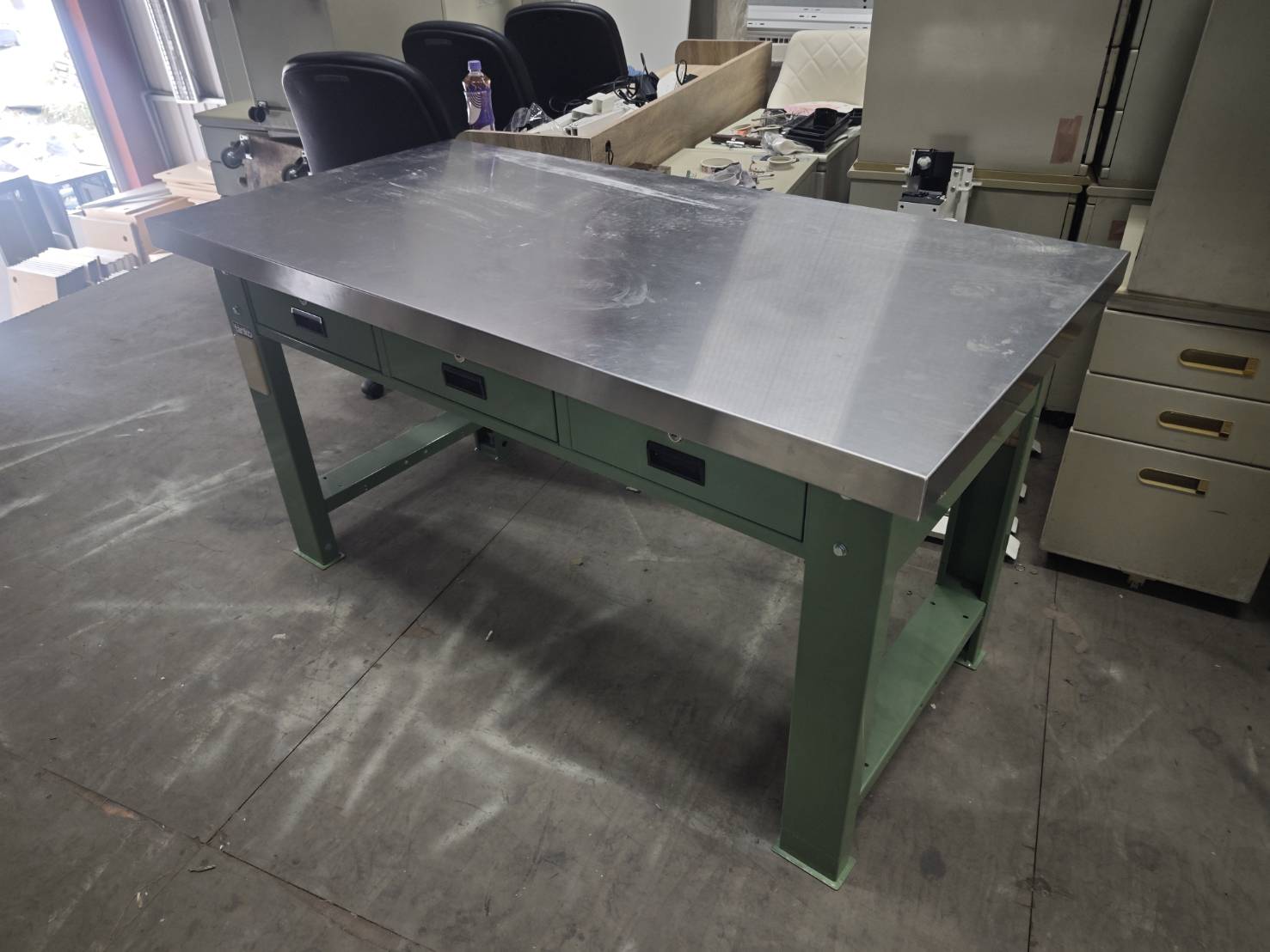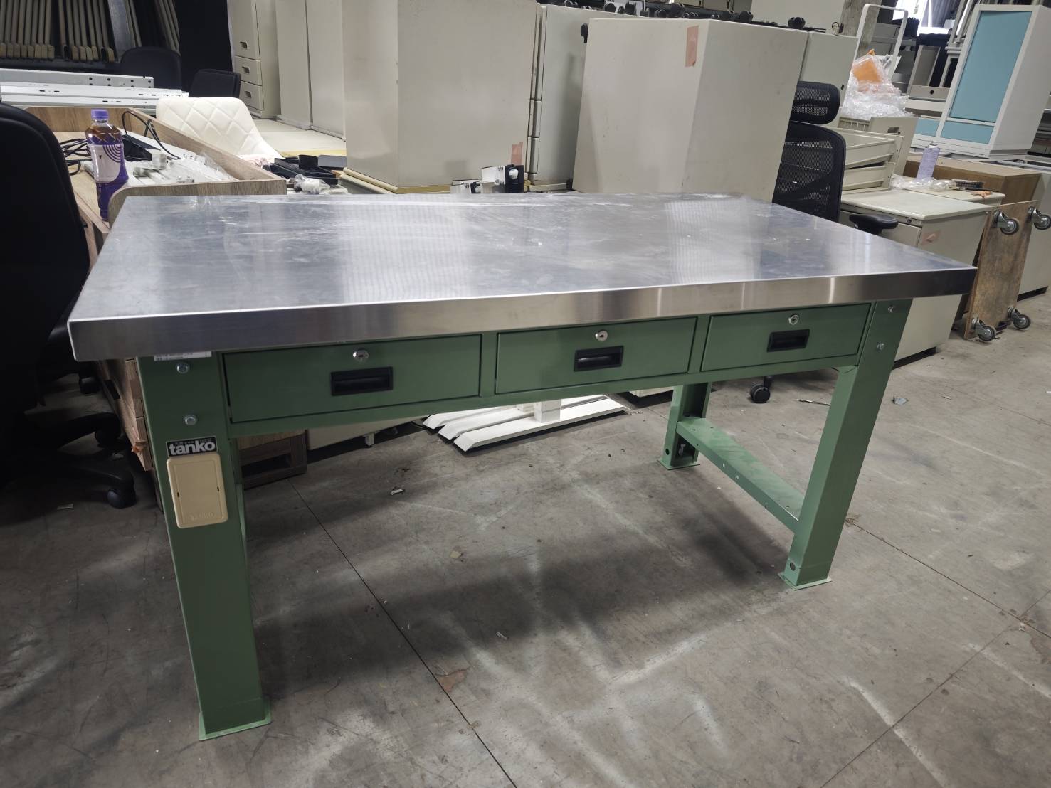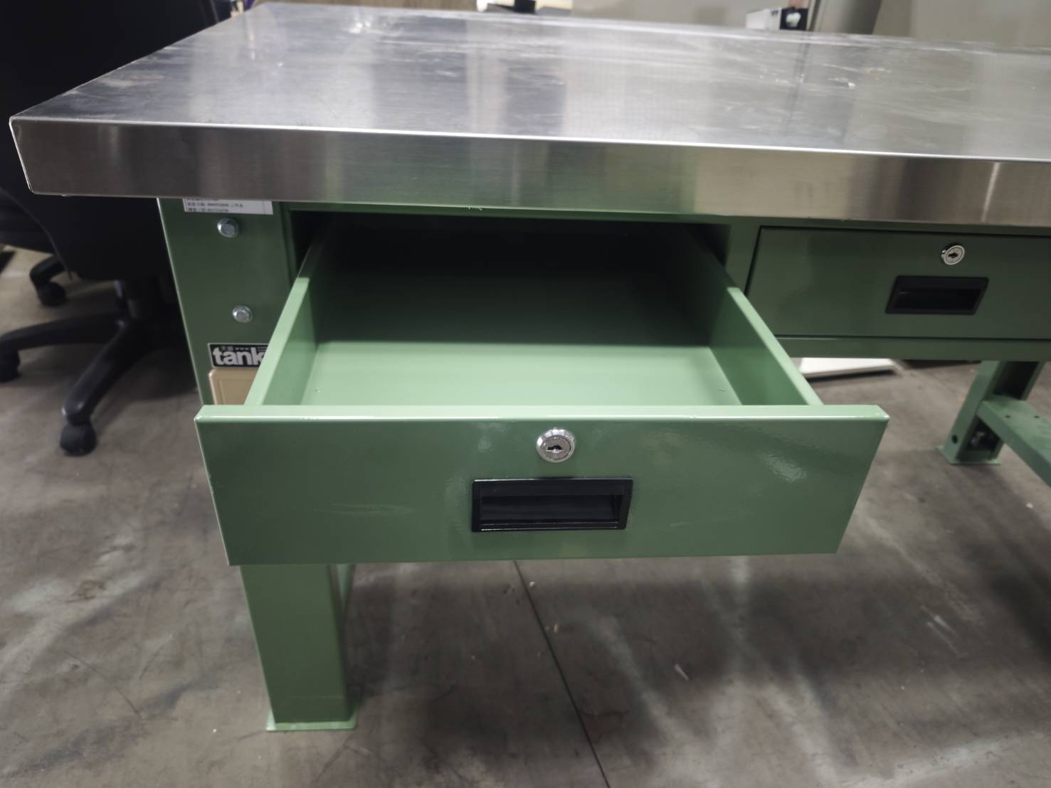 WAT-5203N 重量型工作桌-橫三屜-白鐵桌板,有二座
