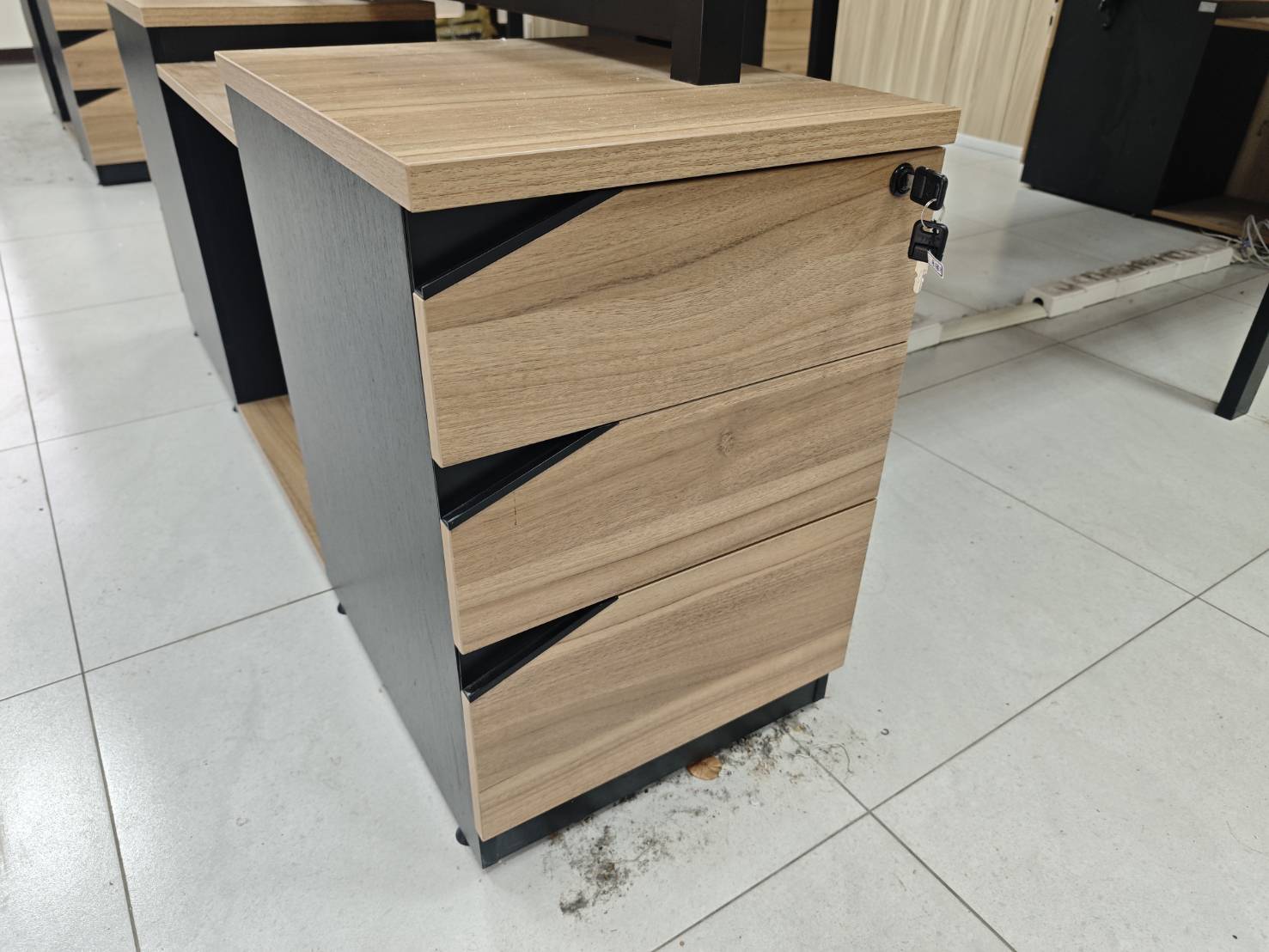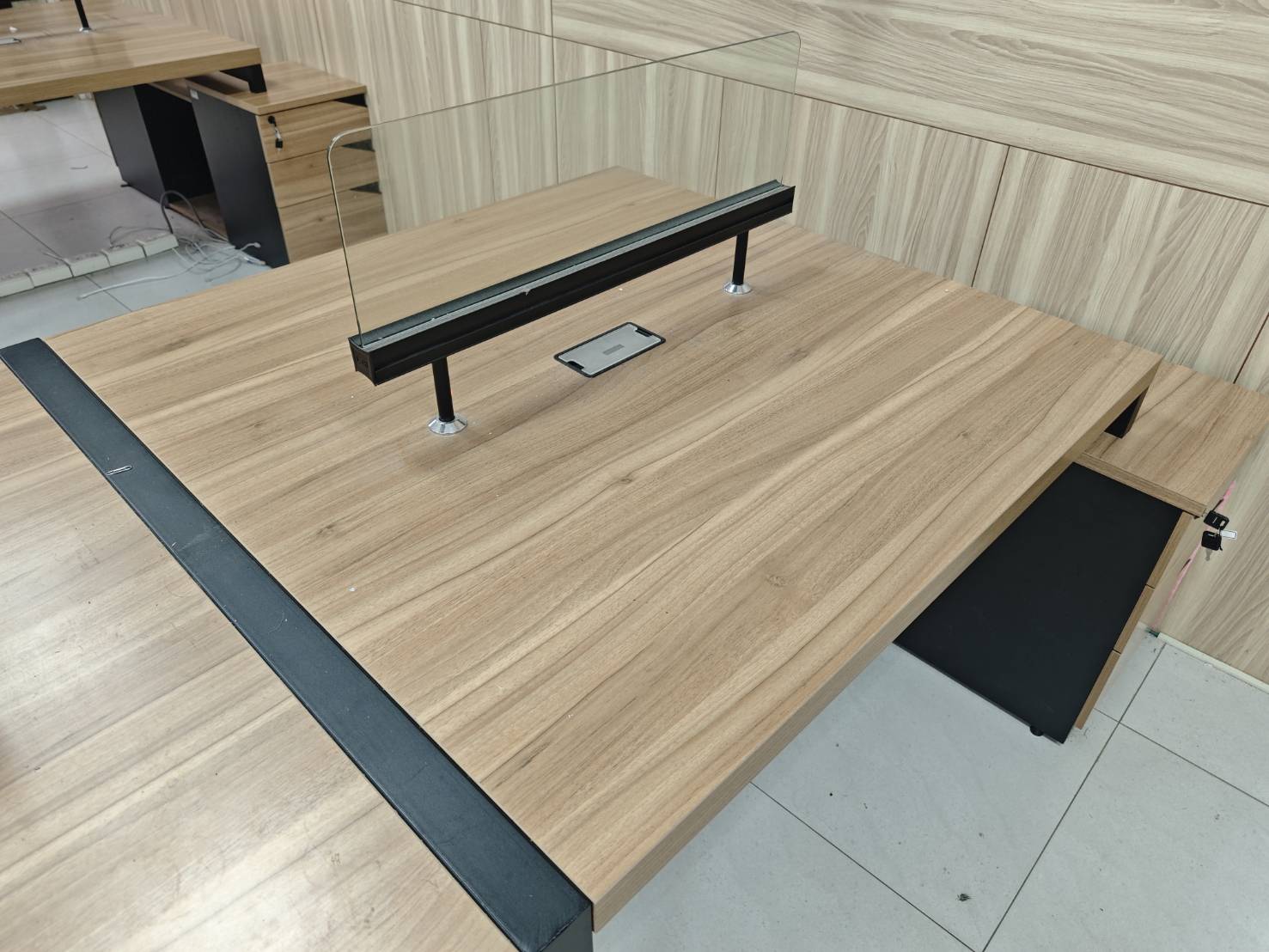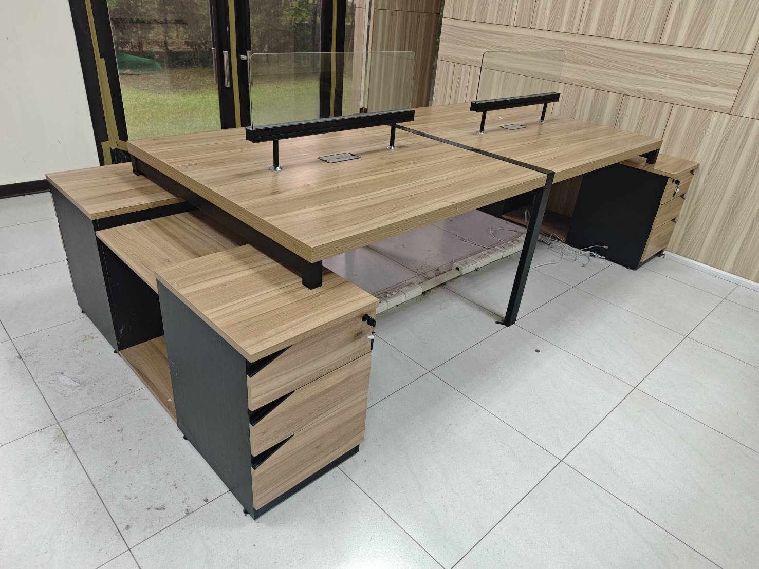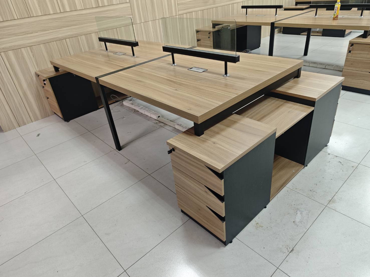 雙邊四人辨公桌 有2座,都有每個位置,都有桌下置物櫃。