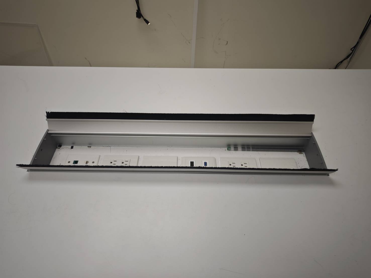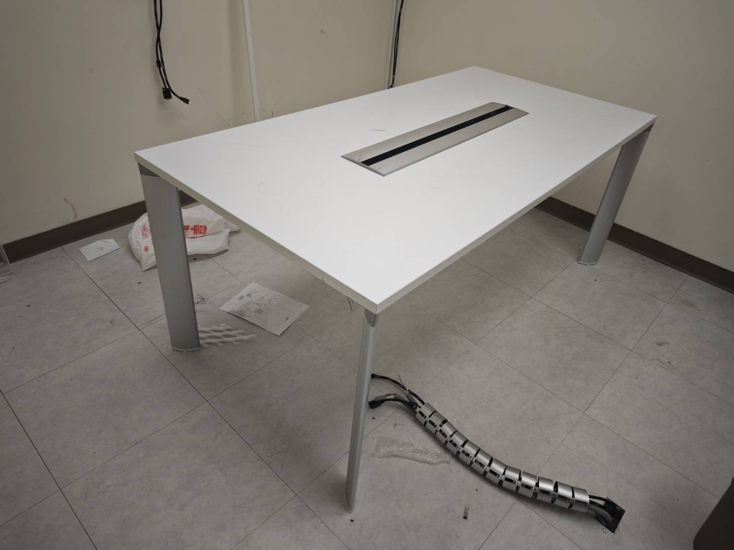 木紋 美耐板面,桌板為一片式,有出線盒,只有一座