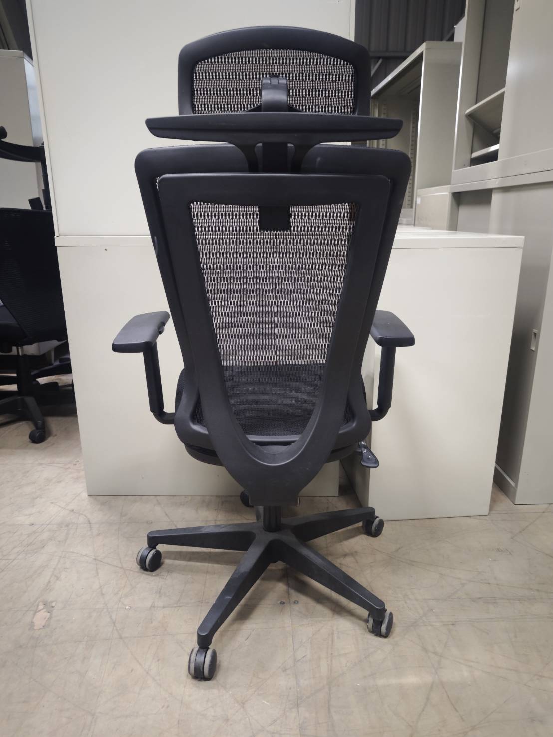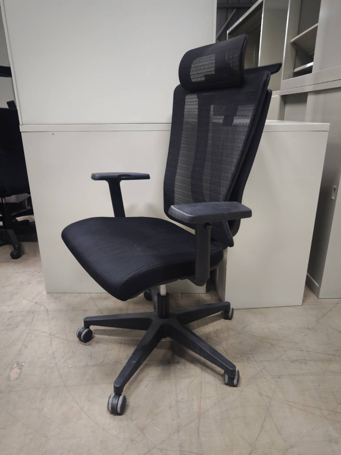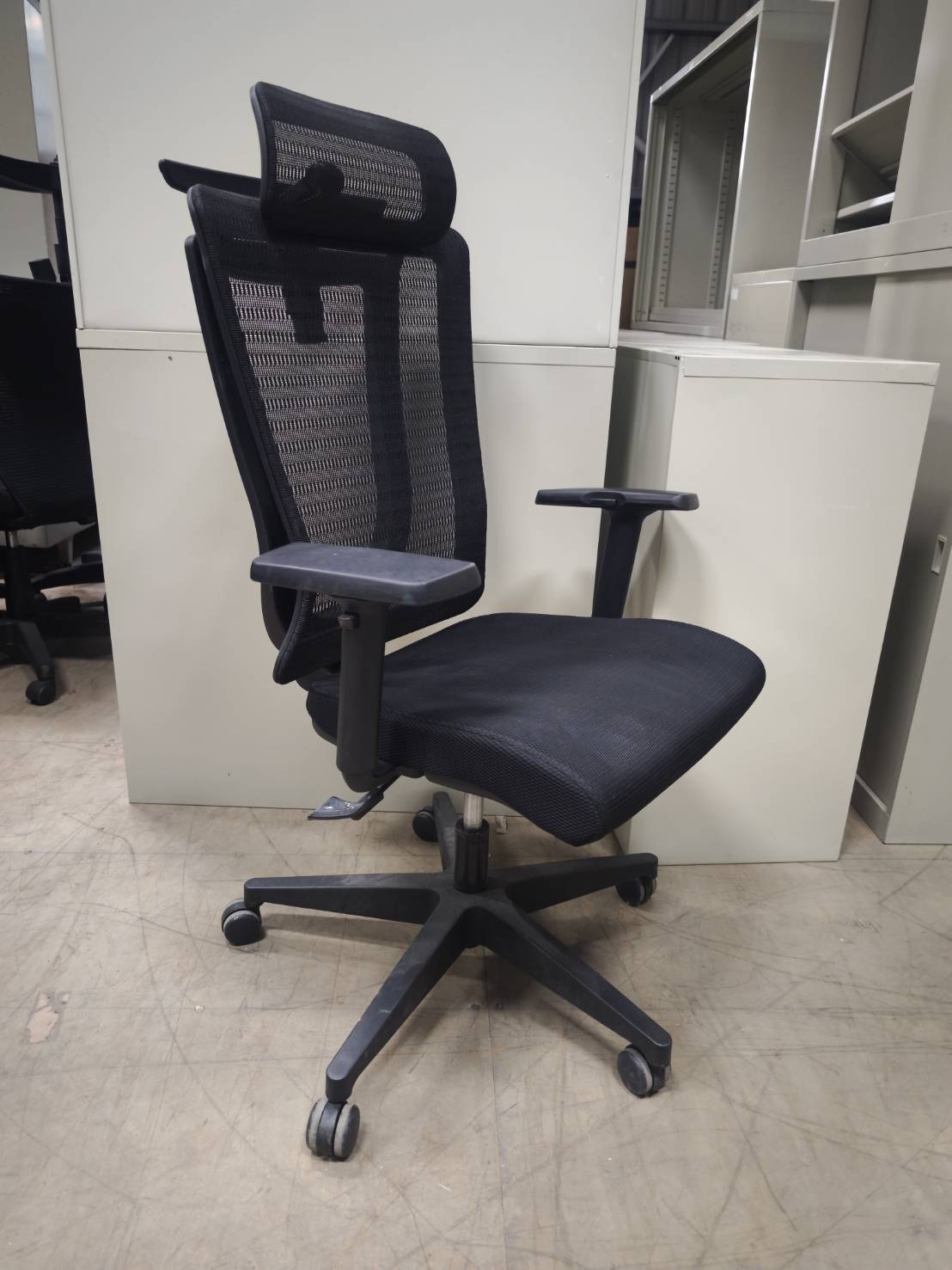 震旦,高背黑網椅,有扶手、後仰,升降,共有2張