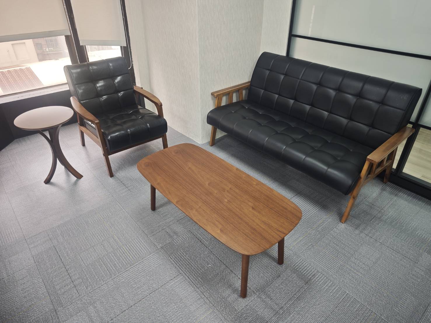 皮沙發組,含一個圓茶几,一個長條茶几,只有一組